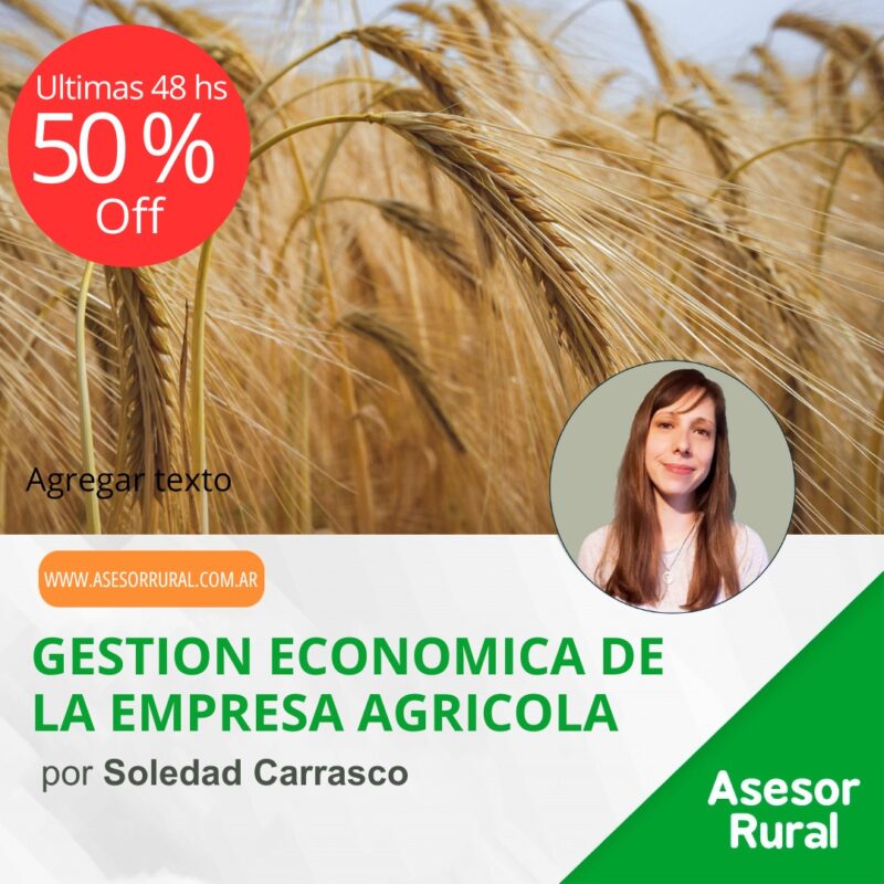 Curso práctico para mejorar la gestión económica de tu establecimiento agrícola. Está especialmente orientado a productores y profesionales dedicados a cultivos extensivos anuales, como trigo, cebada, maíz, sorgo, girasol, entre otros, sin importar si la escala productiva es pequeña, mediana o grande.